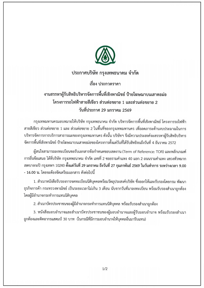 ประกวดราคา งานสรรหาผู้รับสิทธิ์บริหารจัดการพื้นที่เชิงพาณิชย์ ป้ายโฆษณาบนเสาตอม่อ