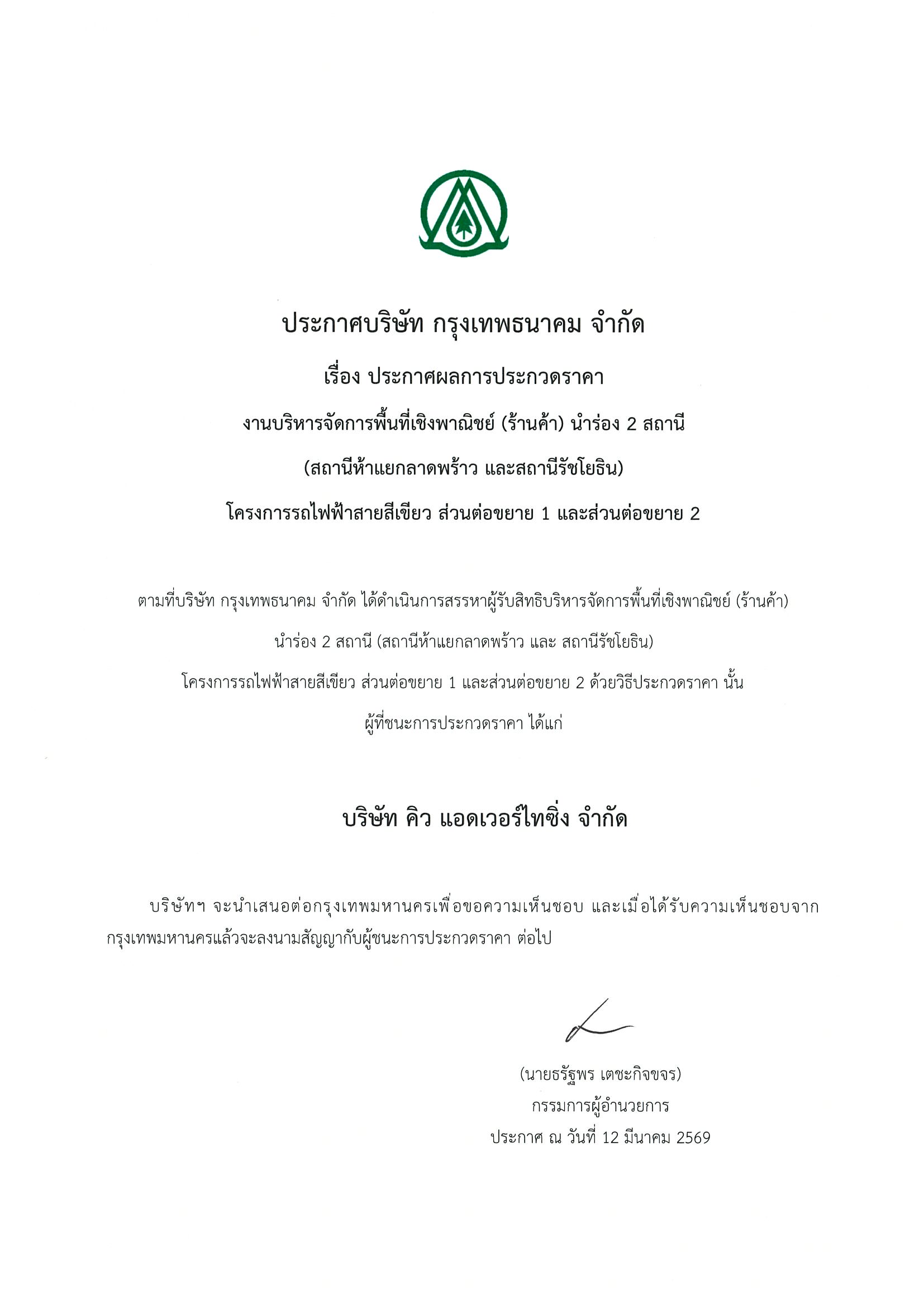 ประกาศผลประกวดราคาพื้นที่ร้านค้านำร่อง2สถานี